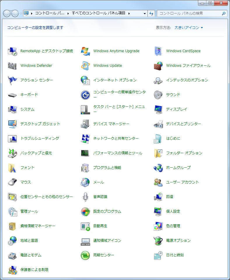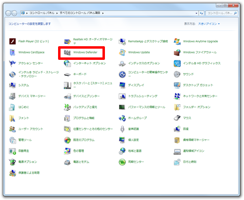 Windows Defender は、コントロールパネルの前のほうにあります。