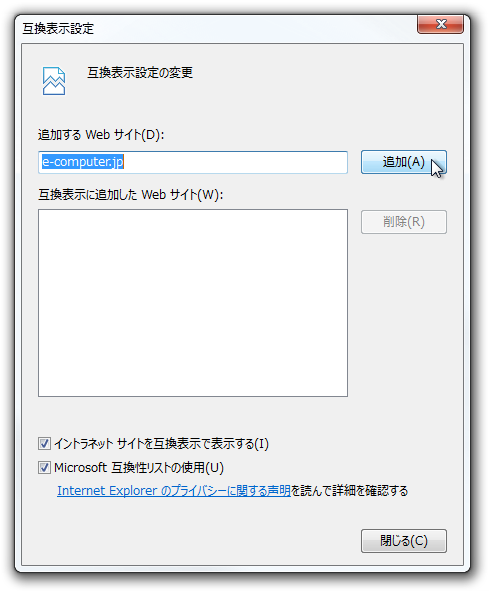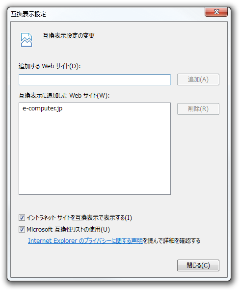 Windows 7 for x64-based Systems 用 Internet Explorer 8 互換表示一覧の更新プログラム (KB2598845)