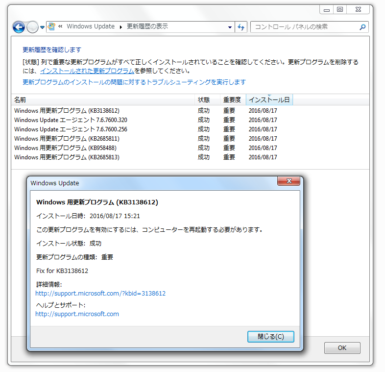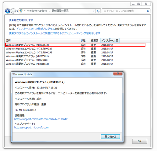Windows 用更新プログラム (KB3138612)